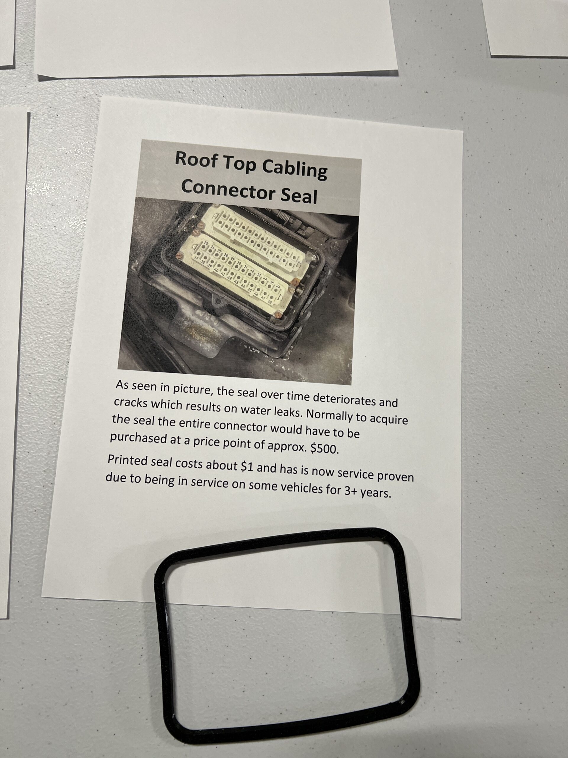 Today, our mechanics print a wide variety of parts needed for our trains, buses and vans, including fuel caps, bumpers, mirror arms, keypads, and more, but the part that got it all started was a steering column seal. A small gap near the bottom of the steering column on our buses allowed frigid air to enter the operator comparting, causing discomfort. A universal seal for the steering column was available for the manufacturer at $115 each. Our team was able to 3D print the parts for just $7 a piece, a tremendous savings when there are more than 400 buses in the fleet. Another benefit, instead of purchasing a poor-fitting universal seal, our mechanics designed the seals to fit perfectly for each bus model.