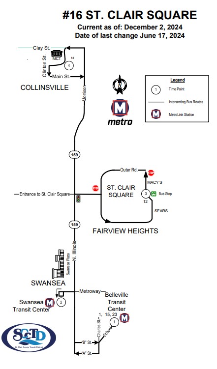 - 20-minute service between Belleville Transit Center and St. Clair Square (daytime weekdays)