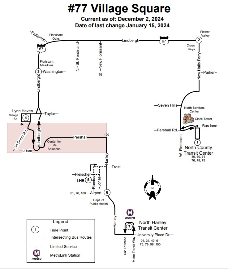 - New Service: Route will be extended to provide service to employers and job centers on Lindbergh Blvd. and on Pershall Road, which were previously served by the #76 McDonnell-Waterford. Route will provide service to Lighthouse for the Blind. Dunn Road, between Hanley Road and Lindbergh Boulevard will not be served. Route will not serve PepsiCo, that will now be served by the new #76 N. Hanley Shuttle route.